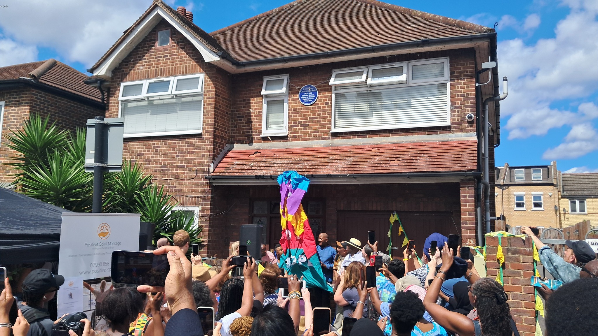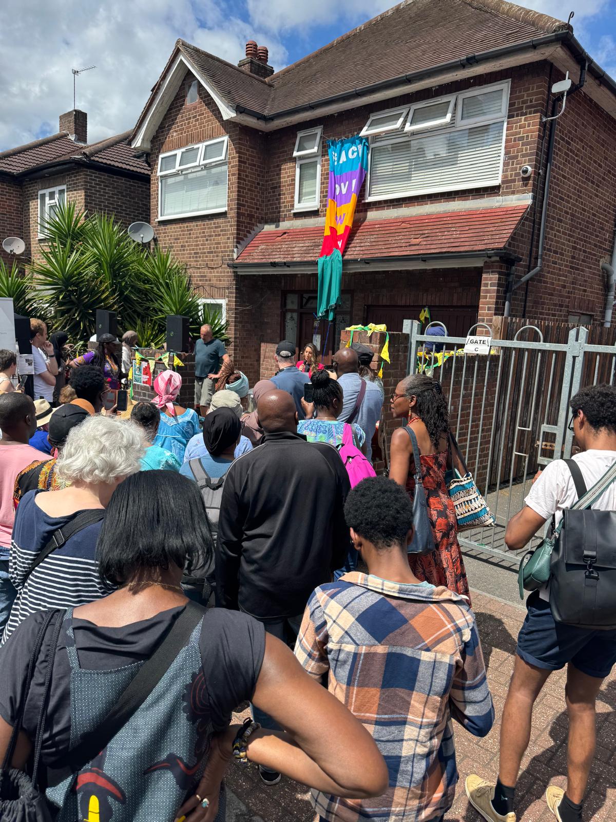 We just had to make the unveiling of Constance’s plaque part of an annual local event, one which sees throngs of Tooting folk come together, the much-loved Community Fun Day. By the greatest fortune it happens to take place on Broadwater Road with Number 20 very much right in the middle of it all. This was an opportunity for thousands of people to witness the occasion and find out about  the remarkable African woman who lived in this street for three decades at the end of her life. The organisers were delighted to have this additional aspect to their big day and with our Member of Parliament, local councillors and community leaders present as well as numerous young people, we had a great opportunity to involve them all in the ceremony. Adding a key Krio representation to the day was historian Iyamide Thomas who used to bring her Mother over to Tooting to visit her old friend.