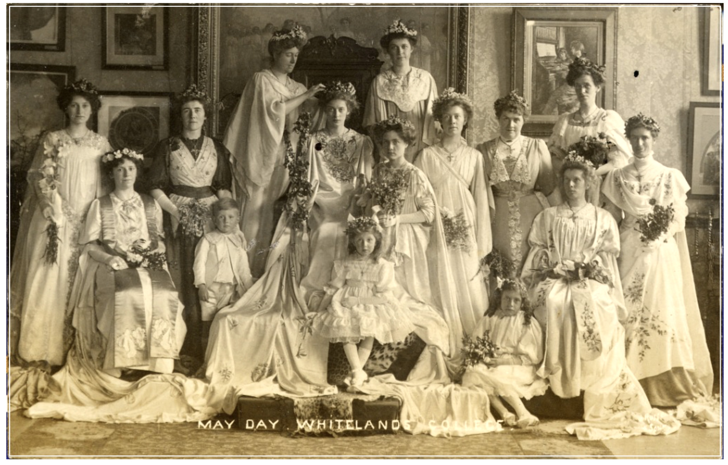 Quite what she made of the ‘May Queen’ rituals we don’t know but hopefully  electing ‘the likeablest and the loveablest’ was a welcome distraction from training to be a teacher. The gigantic main college block, almost a prototype for Scott’s work on Battersea Power Station, its Chapel infused at the time with Willam Morris and Burne-Jones detail, all set in dappled woodland, evoked learning, progression and tranquilty in a world that was getting increasingly turbulent. Mussolini’s fascist Italians invaded Ethiopia and Emperor Haile Selassie sought refuge with the Heligmans in nearby Wimbledon. Racists were also on the streets of London where Moseley’s black shirts had taken over the old Whitelands site in Chelsea and renamed it ‘Black House’.