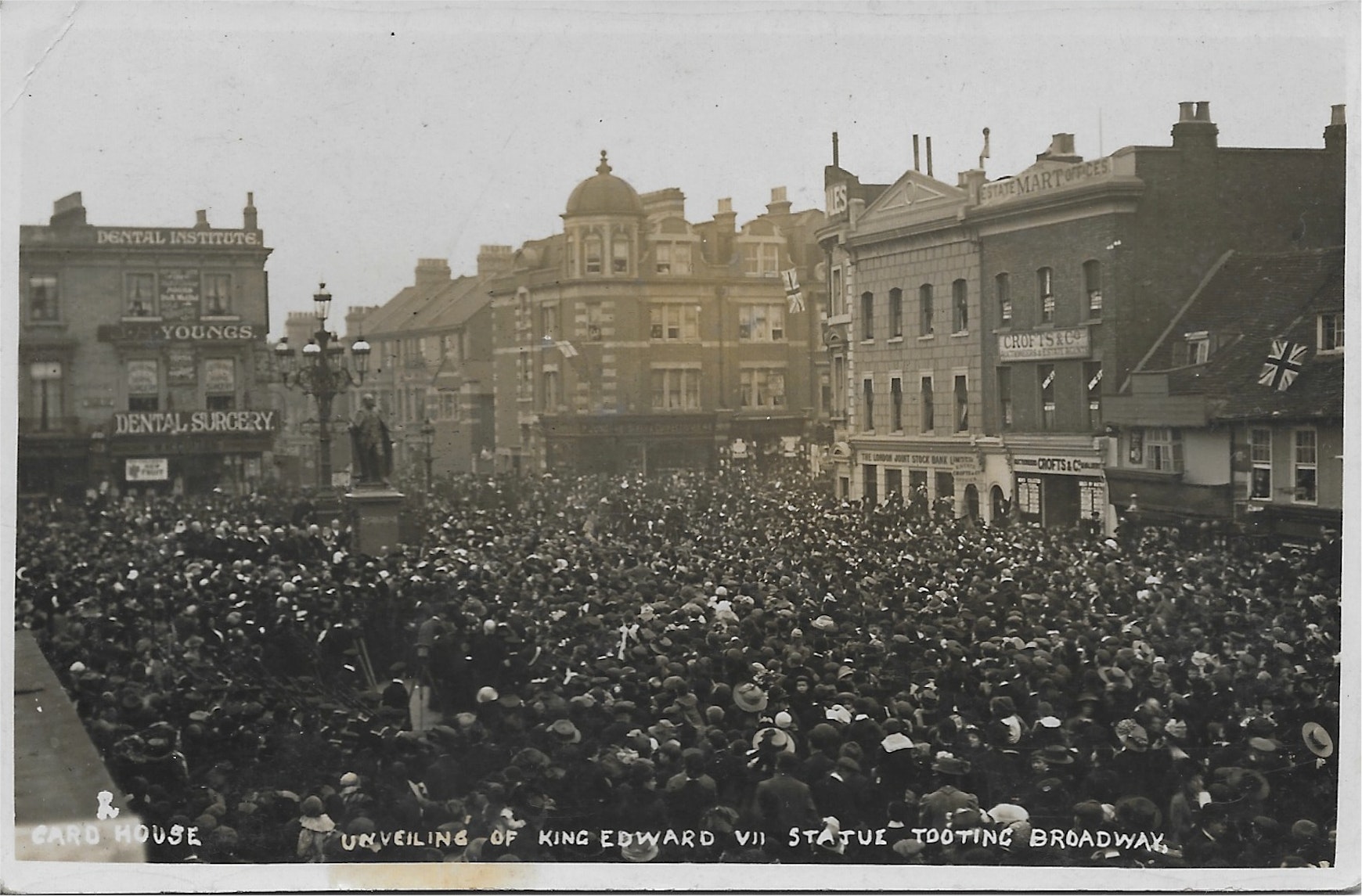 Exiting Tooting Broadway tube station, the imposing bronze figure of King Edward the Seventh seems to gently usher visitors towards the delights of Upper Tooting Road. Like some over-sized regal estate agent, it’s almost like he’s about to give a pitch on what a great place this is to live. Indeed he’s looking in the direction of Totterdown Fields. The construction of the great ‘garden’ estate there mirrored the period of his reign and a home on it would have been the place to be. The statue celebrates a golden Edwardian age, when thousands of arrivals flocked to the new commuter suburb, now just a short tram journey from central London. Great public buildings were built, cinemas opened and the radical Totterdown Fields estate was acclaimed around the world. In 1903, work-in-progress was famously checked by three future kings who rolled up on a decorated tram. The house they visited on Ruislip Street is marked with a plaque.